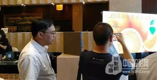 圖為齊普光電副總經(jīng)理楊英明先生向重慶安防客戶介紹金錢豹小間距產(chǎn)品