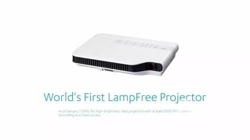 今天,全行業都在大談激光光源這樣的新光源技術,因為它高效、環保、長壽命的巨大優勢是作為投影機光源的不二之選。然而,業內第一個推出新光源投影機的,正是卡西歐。2010年1月7日,卡西歐推出了世界上第一臺無燈泡的新光源投影機,亮度達到了2000流明,拉開了投影機使用新光源的序幕。