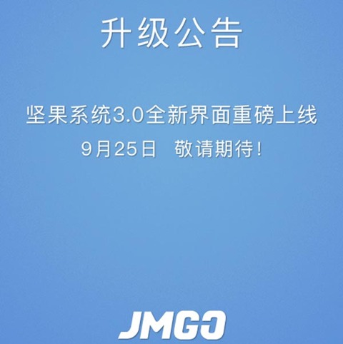 2、本次升級包括S1、S1pro、G1、G1pro、G1S、P2、X1等機型,升級時間為9月25日00:00(已經升級為堅果OS 3.0或以上版本的用戶,將不會再收到升級提醒)。