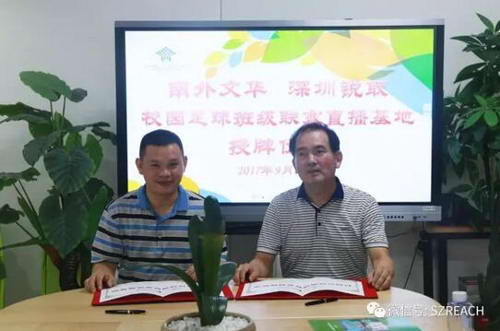 9月20日,深圳銳取信息技術股份有限公司與南外(集團)文華學校舉行校園足球班級聯賽直播基地簽約儀式。深圳市教育局體育教研員黃鎮敏、南外(集團)文華學校副校長江濤、南外(集團)文華學校足球隊總教練鄧展望、銳取董事長張秋、深圳市教科院二級教授劉晉等多名領導出席。