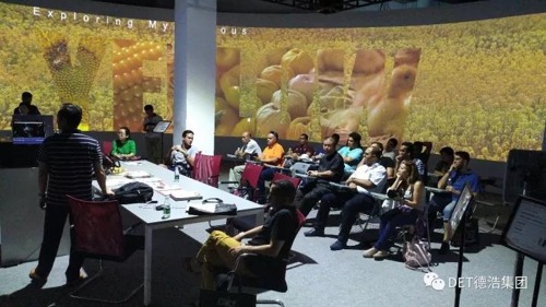 在欣賞了融合工程投影、穹頂投影、虛擬仿真、家庭影院、未來教室、監控調度、互動畫板、會議系統等各方案后,考察團對DET展廳面積之大,方案之專,展示效果之好表示了驚嘆。同時表示這次在廣州的學習收益匪淺,表達了對中國舞美技術的贊美。“ 中國具備世界一流的舞美技術,更值得學習的是,其能夠將技術與藝術完美融合,將投影、燈光技術巧妙地應用到節目中,極具藝術效果。”