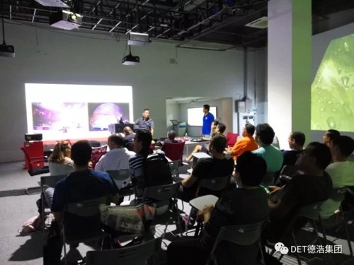 DET德浩公司領導金總向現場人員講解了德浩集團的公司概況、DET激光投影機的產品分布和應用方案,以及近年來的DET激光工程投影機在舞美行業上的典型案例。