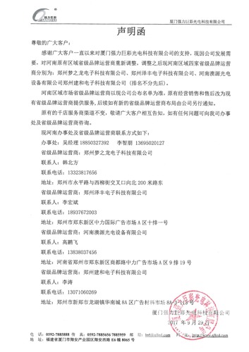 一個好的平臺,一種好的商業化模式釋放的能量是驚人的,它巨大的吸引力和凝聚力,讓圍繞著強力巨彩的省級品牌運營商團隊不斷的發展壯大。今年,又有一大批渠道廣、客戶基數大、落地快、執行力強的有識之士加入強力巨彩虎賁之師的隊伍。與此同時,我們也不斷調整渠道布局,進一步完善商業服務模式,就在今天河南又傳來捷報:河南經銷渠道調整全部完畢,由鄭州夢之龍電子科技有限公司、鄭州澤豐電子科技有限公司、鄭州澳源光電設備有限公司、鄭州建和電子科技有限公司組成的強大省級品牌運營商新陣容正式成型,他們將共同攜手為用戶提供更為極致的LED顯示體驗。