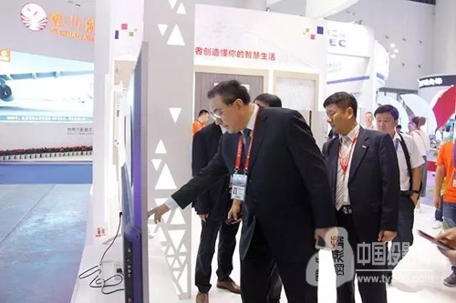 ▲四川省國資委黨委書記、主任徐進(jìn)參觀進(jìn)出口展長虹展區(qū)