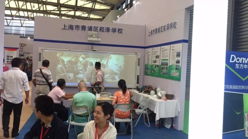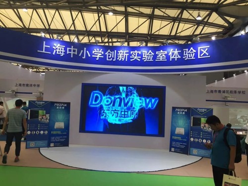 此次主辦方為了以最佳的方式展示上海中小學(xué)的教育成果,特意打造上海創(chuàng)新實驗室展示區(qū),為了能展示出最佳效果,對此展示區(qū)的顯示設(shè)備要求甚為嚴(yán)格,而東方中原Donview品牌的大尺寸交互式智能白板一體機搭配派克斯激光投影機等系列產(chǎn)品脫穎而出,為大家?guī)砣碌膭?chuàng)新實驗室、智慧教室、未來教室的高端解決方案,給大家一個完美互動和唯美觀感的全新體驗,作為贊助商為展會的風(fēng)采增加濃墨重彩的一筆。