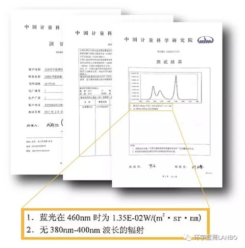 LANBO平板投影不僅有效的避免了環境光干擾的問題,還可以避免藍光的傷害。藍光屬于高強度的短波,主要集中在460nm處,人眼長期觀看,會對眼睛的黃斑處造成不可逆的損壞,是損傷視力最直接的“殺手”,LANBO平板投影自發光特性以及屏幕表面有專利屏幕保護,通過了權威機構“中國計量科學研究院”測試報告顯示,LANBO平板投影的藍光在460nm輻射亮度為0.0135W/㎡•sr•nm,遠低于100W/㎡•sr•nm無危害的標準,同時相當于OLED屏幕藍光輻亮度的1/10,此數據也表明LANBO平板投影對人眼的傷害,可以忽略不計。