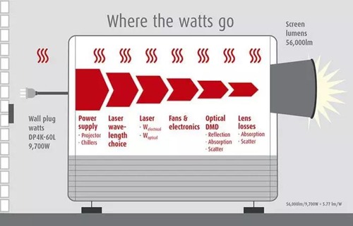 下面的信息圖描述了從墻壁插頭到銀幕的能量轉換損失。