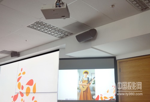 為了方便會議室兩側的與會者觀看,主屏幕的兩側還設置了兩臺索尼商務投影機投射畫面。