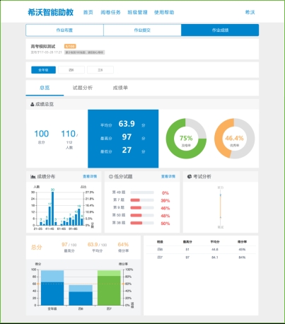考試是為了更好地總結特定階段的學習成果,查漏補缺。試卷批改僅是考試后的一部分工作,龐大復雜的學生成績、答題情況統計、學情分析工作也將占用老師大量的時間。希沃智能助教在自動批改完試卷后,將自動生成班級成績單,清晰展現全班學習成績,老師再也不用耗時費力地手動統計成績。