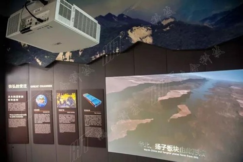 當(dāng)科學(xué)碰上了“科技”,知識學(xué)習(xí)變得更加直觀、生動。“構(gòu)造應(yīng)力的實(shí)驗(yàn)室”展項(xiàng)則是通過單臺NEC PA653U+工程投影機(jī)采用吊頂安裝方式,為觀者展現(xiàn)大別山麻城獨(dú)特的構(gòu)造巖、礦物標(biāo)本等,揭示巖層、巖體等我們生活的地球應(yīng)力場奧秘……