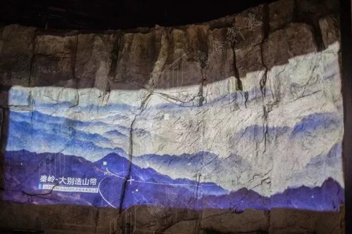 “全球山帶的分布”展項(xiàng)模擬山體搭建而成一個弧形投影背景,通過兩臺NEC PA653U+拼接融合的解決方案,展現(xiàn)大別山造山帶的特色,及地球上不同時代、不同類型的造山帶和全球分布。