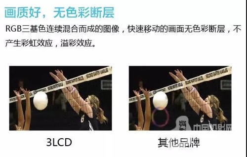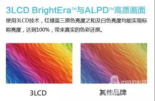 3LCD BrightEraTM給投影機提供了高色彩亮度,真實還原色彩,色階過渡自然,無色斑現象,紅綠藍三色液晶板精準工作,有效避免色彩分離現象,色域范圍已經達到甚至超出Rec 709標準,所呈現的色彩已超出人眼所能識別的范圍。
