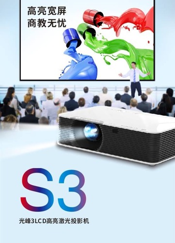 光峰S3系列3LCD高亮激光投影機,產品定位于高亮寬屏,炫彩綻放,商教無憂。產品包括5個機型,亮度高達5000/4500流明,分辨率覆蓋WUXGA/WXGA/XGA,天生寬屏顯示,適用于高等教育和高端商務會議場合,如學術報告廳、階梯教室、大會議室、中小型會場的明亮環境。