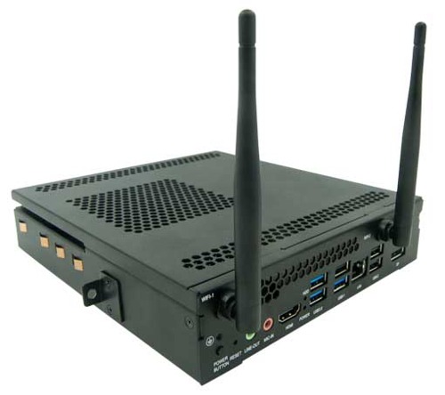 后置接口隱藏在交互平板的左后方,提供了RJ-45等多種類型的接口,可連接展臺、中控,攝像頭等等設備。產品提供了插拔式的OPS接口,用戶可根據(jù)自己的預算選擇不同規(guī)格的OPS。如果交互平板有了OPS,相當于內置了一臺電腦,能夠脫離外接設備直接教學。