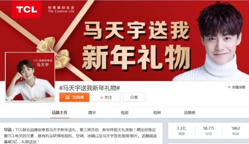 只請了馬天宇作TCL的品牌創享官