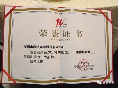 2017年,聯(lián)建光電用產(chǎn)品說(shuō)話,以服務(wù)制勝,在安防行業(yè)打造了多個(gè)經(jīng)典案例,建立了深厚的品牌影響力和客戶美譽(yù)度,獲得中國(guó)安防十大最具影響力品牌的殊榮可謂是實(shí)至名歸,感謝社會(huì)各屆和新老客戶對(duì)聯(lián)建光電的認(rèn)可,2018年,聯(lián)建將繼續(xù)堅(jiān)持“盡顯用戶所想”的愿景目標(biāo),為中國(guó)安防事業(yè)的發(fā)展,貢獻(xiàn)自己的力量。