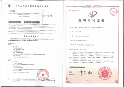 齊普光電的小間距產品在上個月一下拿到了3個國家級發明專利和1個認證: