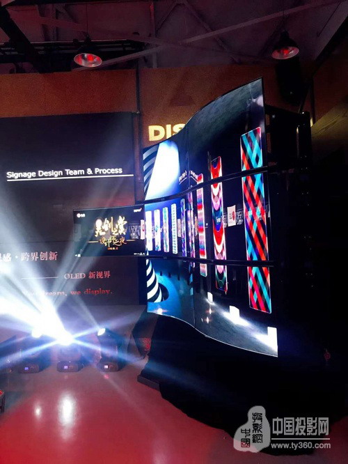 縱觀全場(chǎng),由7塊55寸曲面開放式屏55EF5C拼接而成的異形拼接屏最為引人注目,新穎的造型設(shè)計(jì)與完美的色彩表現(xiàn)力無一不吸引著在場(chǎng)嘉賓的目光。其可彎曲性以及創(chuàng)意拼接功能,能夠根據(jù)環(huán)境設(shè)計(jì)出各種藝術(shù)造型,廣泛應(yīng)用于各種空間環(huán)境,特別是高檔商業(yè)空間、以及各類藝術(shù)場(chǎng)館、博物館等公共空間的顯示地標(biāo)。現(xiàn)場(chǎng)另一個(gè)注目點(diǎn),是由3塊65寸雙面曲面拼接屏65EE5PC拼接而成的波浪形屏,超薄的曲面設(shè)計(jì),加上OLED卓越的顯示技術(shù),猶如藝術(shù)品般,讓人驚嘆。雙面顯示功能,特別適合在機(jī)場(chǎng)、高端商場(chǎng)、展覽館等場(chǎng)所應(yīng)用,有效節(jié)省了顯示器的安裝空間。