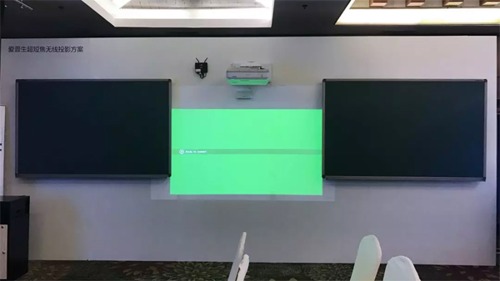 在全新的教學(xué)模式下,部分老師仍然習(xí)慣用粉筆在綠板上書寫重點,愛普生通過CB-710Ui和兩塊萬向綠板打造了超短焦無線投影方案。