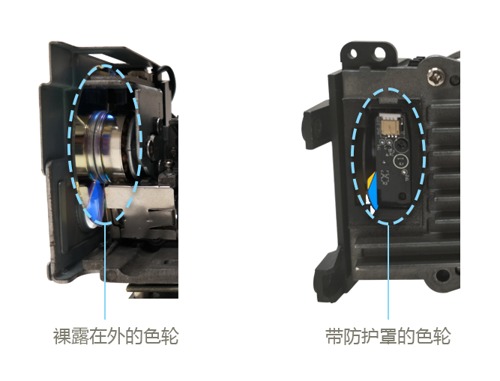 明基教育投影機采用半封閉式色輪包覆,防止灰塵沾覆到色輪周邊,省心省力;