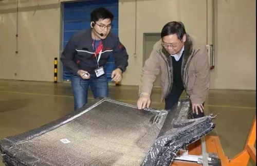 2018年1月16日,四川騰盾科技有限公司(以下簡稱“騰盾科技”)總工程師戴亞隆、副總經理曾聯俊、項目總設計師顧偉、結構專業總設計師黎觀生、強度專業總設計師郭家平等領導一行到訪廊坊,參觀考察了中安信科技有限公司的碳纖維科技展廳、碳纖維生產線和康得復合材料有限責任公司(以下簡稱“康得復材”)碳纖維復合材料4.0版智能制造工廠。