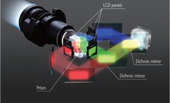 技術是將光分解為紅、綠、藍三種基本色;再由3塊LCD芯片接收信號并控制色彩輸出,形成單色圖像;最后合成為全彩色圖像。