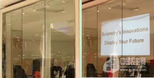 櫥窗投影方案中用戶看不到大幅白色投影幕,而是通過透明投影膜代替,投影膜能夠與日常生活中常見的汽車車窗、玻璃窗、展示柜等透明載體相結合,從而將這些載體轉換成具有不俗顯示效果的透明投影屏幕,加之投影機投射的精彩畫面,在幾乎不打破原有裝飾格局的基礎上巧妙的完成多媒體升級。