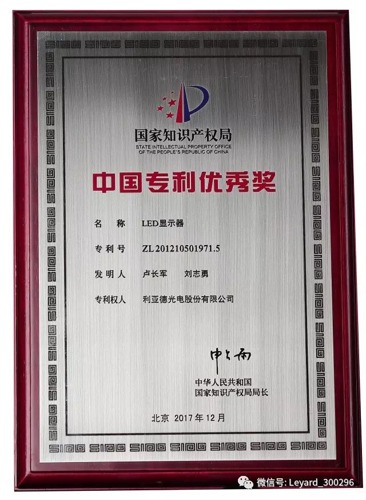 近日, 國家知識產權局公示了第十九屆中國專利獎評審結果,利亞德憑借發明專利“LED顯示器”榮獲由國家知識產權局授予的中國專利優秀獎。