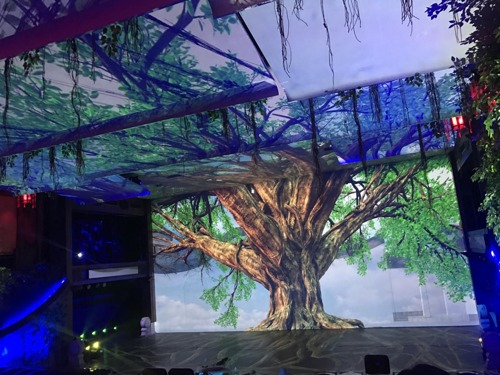 天幕投影的中間區域則應用了1臺松下PT-SDS20K2C和1臺松下PT-FDX110C做疊加,左右兩側使用了2臺PT-FDX92C和4臺PT-FD601CL進行投射。
