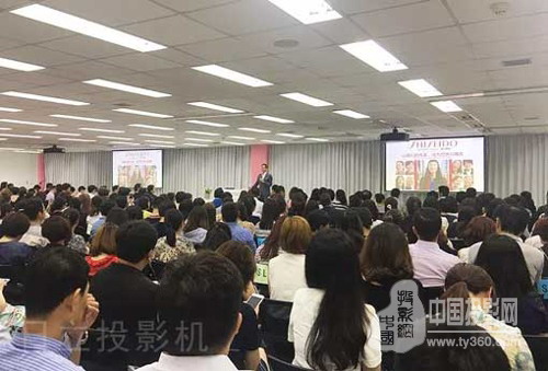 資生堂總部會議室應用2臺日立TCP-D1080W工程投影機,采取左右分開的布局,充分照顧觀眾視角,高畫質為會議室提供了靚麗效果。日立投影機精彩畫面與資生堂“唯美”的公司氣質相得益彰,表現完美。