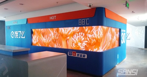 自這家網上訂餐平臺2008年成立以后,餓了么在大家心中已經不僅僅是一句問候語,而是飲食習慣跟生活方式的變革者。為了配合品牌理念宣傳,提升公司品牌形象,餓了么聯手上海三思打造餓了么恒溫箱“特制”1.5mm小間距LED顯示屏,90°直角被“掰彎”。
