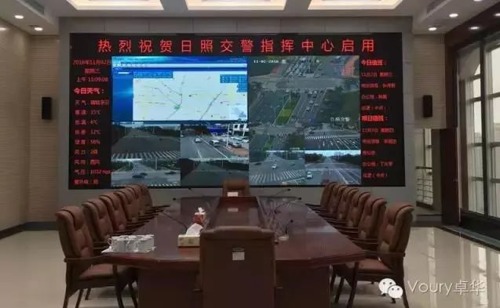 Voury卓華承建的日照市交通警察支隊智能管控系統指揮中心大屏幕落成,長度8米,高度3米,顯示面積達24㎡。根據監控中心大屏幕顯示系統遵循技術先進性、高可靠性及耐用性、與其他系統之間的兼容性、可擴展性、經濟適用性為原則,最終選用Voury卓華微間距P1.6顯示屏作為指揮中心系統大屏幕供應商。