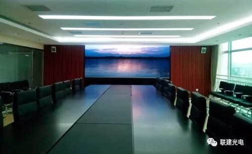 此外,聯建光電還為長沙銀行總部三樓貴賓廳打造了一塊高端小間距LED會議屏,依舊采用貼墻前維護設計,屏幕點亮后,播放流暢穩定,色彩鮮艷,畫質細膩清晰,為古色古香的貴賓廳增添了一抹靚麗的科技色彩。 長沙銀行的領導在驗收該項目時,也不禁對本項目完美的顯示效果發出了贊嘆,由聯建光電打造的高端小間距LED顯示屏可謂是貴賓廳的點睛之筆。