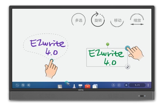 面對大家想法較多,討論時普通白板總是擦了又寫,費時又費體力的情況,會議平板支持頁面隨意增減,書寫空間不受限制,寫滿一頁另開一頁,最多可增至10頁,過程中無需費勁擦除整版字跡;揮揮手就能對字跡進行擦除,并可圈選局部書寫內容進行移動或者縮放,還能隨時翻頁回看前面的記錄,使用起來干凈又便捷,盡情容納你的腦洞。
