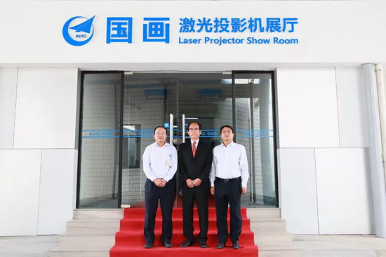中村修二教授與中航國畫董事長蒲毅、總經(jīng)理錢仕良在國畫展廳前合影