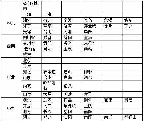 試運行城市列表: