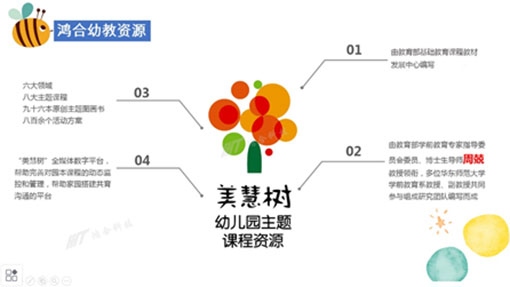 傳統(tǒng)的教學(xué)中幼教老師需要利用很多課余時(shí)間來(lái)準(zhǔn)備一些益智游戲、繪本故事等等,鴻合幼教交互平板內(nèi)置完整的特色課程資源及校園管理體系為老師們省時(shí)省力。美慧樹(shù),嚴(yán)格按照《3-6歲兒童學(xué)習(xí)與發(fā)展指南》要求研發(fā)的優(yōu)質(zhì)學(xué)前教育資源多媒體版教育軟件。聽(tīng)故事、學(xué)繪畫(huà), 各種益智小游戲,讓孩子們“動(dòng)起來(lái)”,在游戲中進(jìn)行啟蒙教育,幫助幼兒建立科學(xué)的思維方法、發(fā)展幼兒優(yōu)良的學(xué)習(xí)品質(zhì)。大愛(ài)幼教,涵蓋幼兒園新建、環(huán)境建設(shè)、招生、課程管理、家園溝通、園長(zhǎng)領(lǐng)導(dǎo)力打造、園本課程建設(shè)教師授課方法技巧等多個(gè)方面的體系培訓(xùn)。多方位致力于使智慧幼兒園管理更高效。