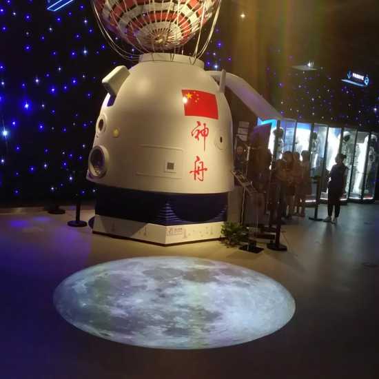 整個(gè)空間使用了多臺(tái)視美樂激光投影機(jī),用光影技術(shù)和實(shí)景模型組合打造成的逼真太空場景,不管是孩子還是大人,都可以在這里近距離接觸關(guān)于宇宙和航天的知識(shí)。