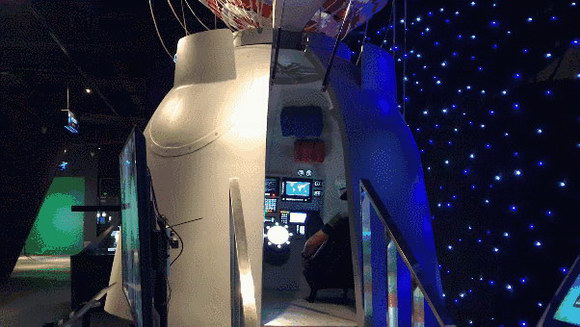 9號(hào)宇宙中還有很多有趣的體驗(yàn)項(xiàng)目,如太空艙VR體驗(yàn),視美樂投影機(jī)結(jié)合VR設(shè)備,將大家瞬間帶入太空艙場景中,艙內(nèi)各種操控設(shè)備觸手可及,一圓宇航員夢想。
