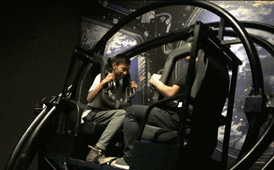 以載人航天體能訓(xùn)練器材為原型制作的三維滾環(huán),考驗(yàn)人在天旋地轉(zhuǎn)時(shí)操作飛船的能力,如果對自己平衡能力有足夠的自信,一定要去挑戰(zhàn)一下!