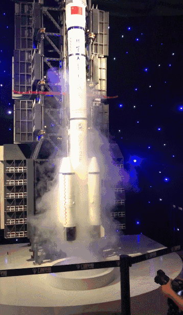 在模擬火箭發(fā)射區(qū),體驗(yàn)者可以親自完成三級(jí)塔架分離和點(diǎn)火發(fā)射的操控。一枚按照1∶6比例制造的火箭,箭體高達(dá)數(shù)米,按下點(diǎn)火按鈕的瞬間,會(huì)聽到火箭發(fā)動(dòng)機(jī)的轟鳴聲,聲光電效果十足。