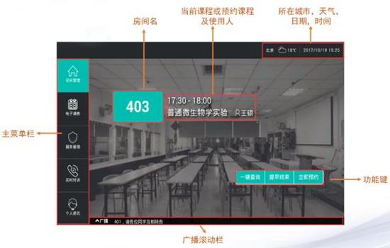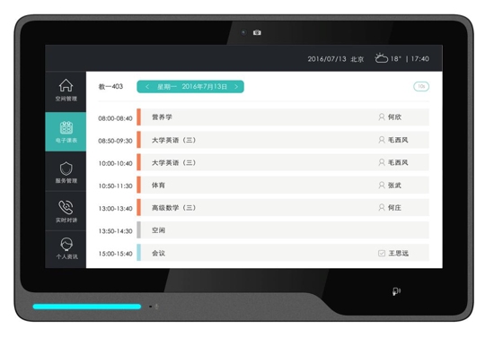 課表查詢:查詢當前教室老師/學生個人全天課程安排及使用狀態