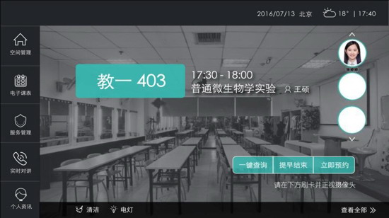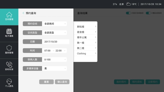 空間預約:老師/學生在任意終端隨時查詢可用教室資源信息,并預約使用。