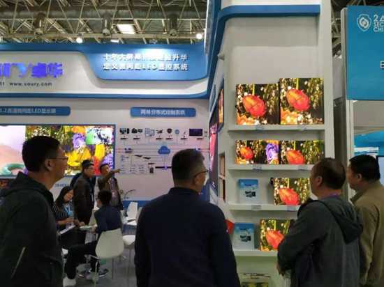 Voury卓華展位主屏采用P1.2微間距LED組成,整屏分辨率將達到3840×1080,;輔屏采用P1.4微間距LED組成,整屏分辨率將達到1920×1080;現場還會有更節能更環保的P0.9新品微間距LED顯示屏首發展示。