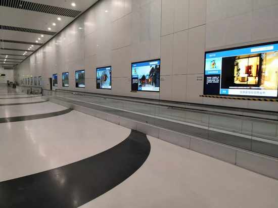 走進旅客候車大廳,最吸引眼球的是一幅靚麗的澳門美景圖,這是由NEC超窄邊顯示器打造的一面完整“無縫”拼接顯示墻,色彩絢麗真實的畫面,讓旅客不禁對這一趟跨海旅途充滿期待,想要一睹伶仃洋對岸的風光。即便旅途匆匆,也不要忽略身邊的美好,在旅客過關通道一側及安檢大廳的立柱上,一幅幅飽滿細膩的粵港澳風景畫讓過往游客紛紛駐足,4K的細膩畫面讓圖片表達更加完美。