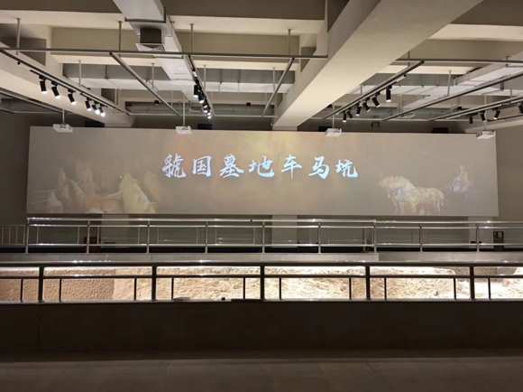在虢國博物館“虢國墓地車馬坑”展項里,多臺索諾克(Sonnoc )SNP-ELU520激光工程投影機通過拼接融合的方面,打造了塊超大畫面的投影墻,投影墻播放的高清動態畫面配合靜態的文物形成了“動靜結合”的展示方式,讓文物“活”了起來,即具備趣味性,又讓觀眾更方便了解歷史,深受觀眾歡迎。