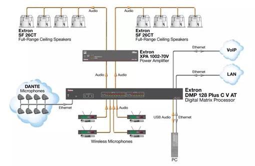>> 12 個 Extron AEC(回聲消除)通道,采用高級算法,優化聲音的清晰度。