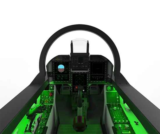 座艙仿真系統的尺寸、內部布局、主體顏色與被模擬飛機一致,座艙導光板照明、儀表照明、顯示器具備夜視兼容模式。