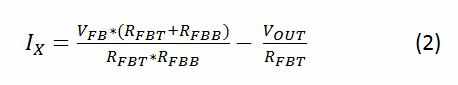 xt設(shè)定為50kΩ。FB節(jié)點(diǎn)可以應(yīng)用基爾霍夫電流定律,您可以使用等式2計算電流IX:
