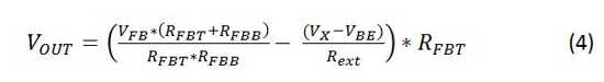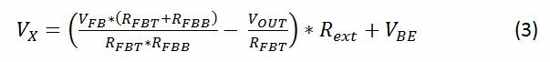 等式14說明,導(dǎo)入FB節(jié)點(diǎn)的電流僅基于程控電壓,不受VBE影響。